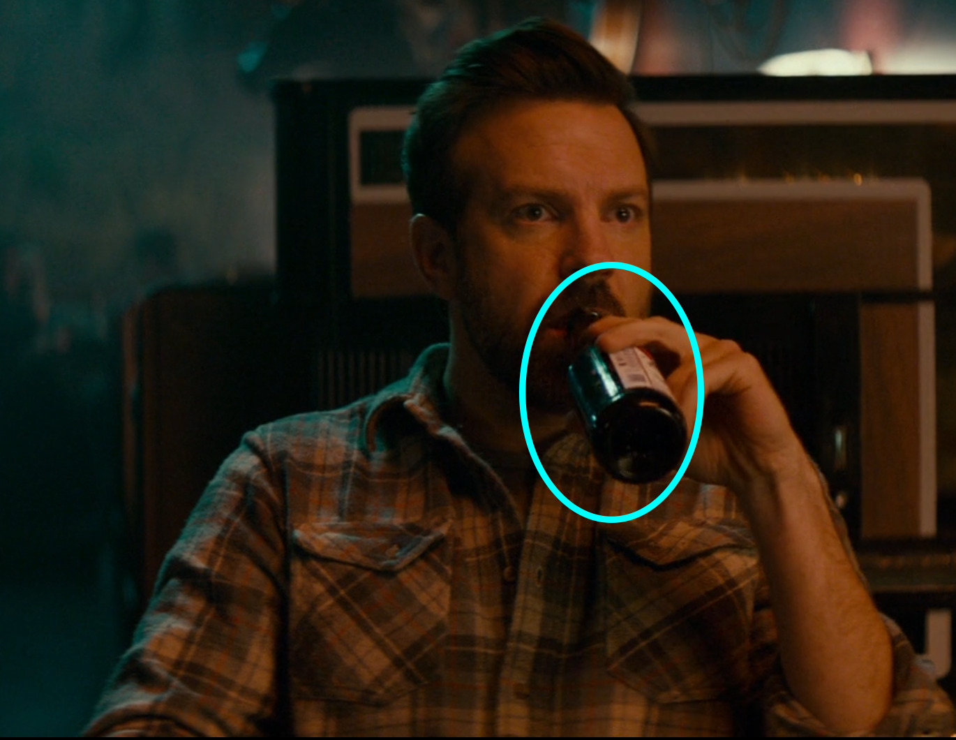 - Right: Another shot of the perfectly displayed bottles behind Jason Sudeikis.