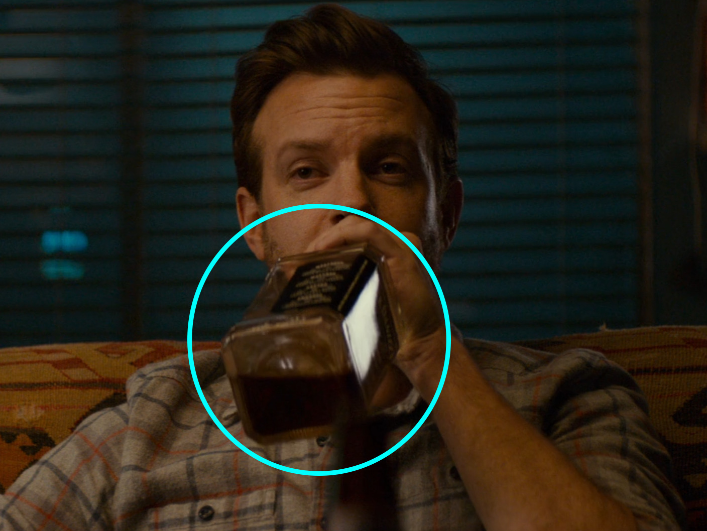 - Right: Jason Sudeikis cutting out the middleman and drinking Jack Daniel’s straight out of the bottle.