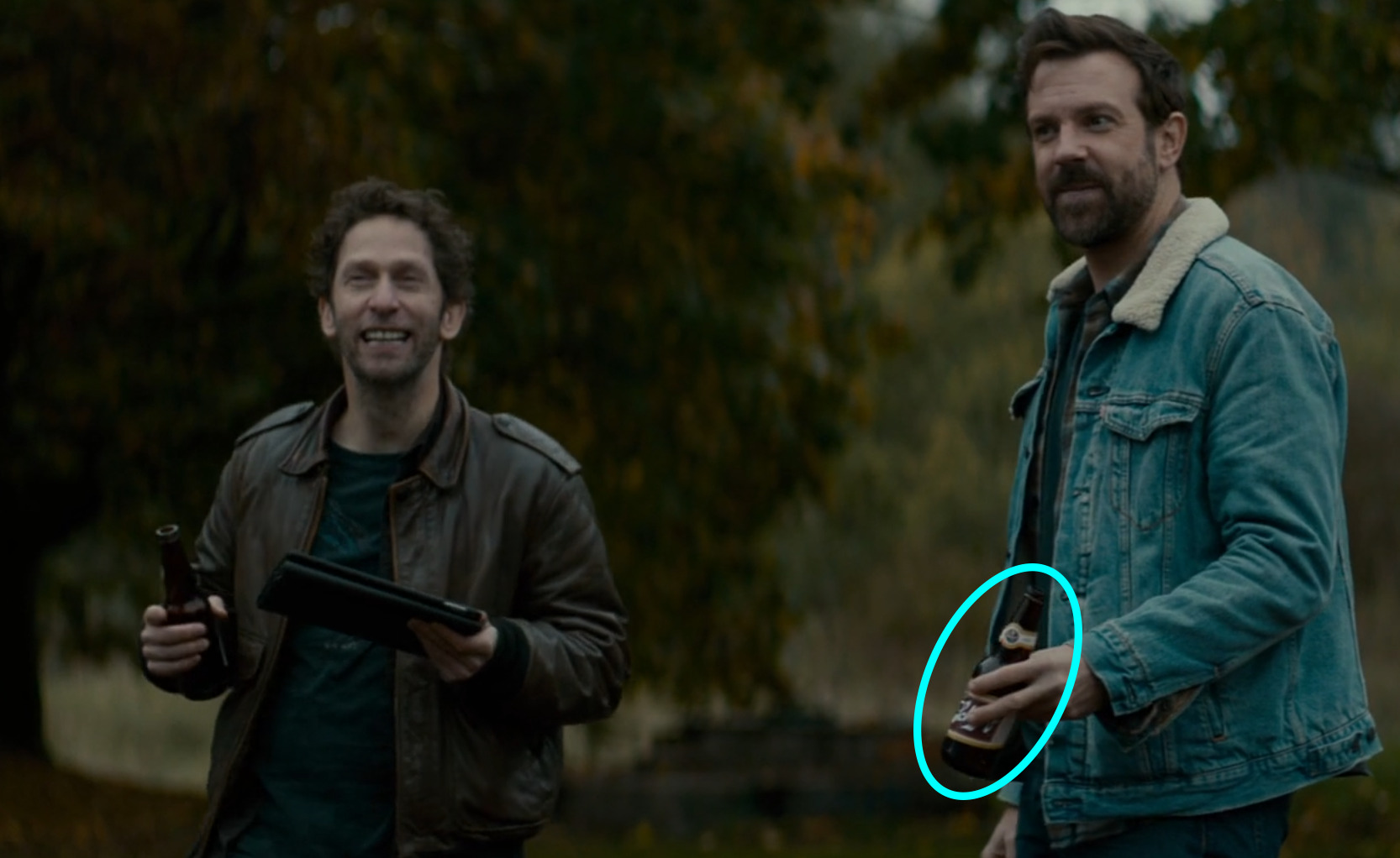 - Top Left: Jason Sudeikis and Dan Stevens drinking PBRs.